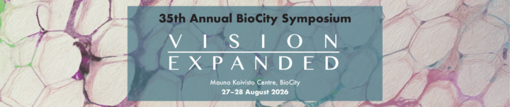 This year as always, BioCity Symposium is arranged on-site in Mauno Koivisto Centre, BioCity in 27–28 August 2025, with the title VISION, EXPANDED. Registration is open until Friday, 14 August 2026.