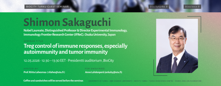 BioCity Turku is hosting 2025 Nobel awardee Prof. Shimon Sakaguchi in May 2026. Don’t miss out on his lecture